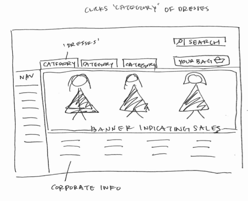 The initial set of wireframes were "transaction" centric and as a consequence, only narrowly showcased the features that directly addressed the needs. In other words, it focused too much on features like the shopping card, hover over, and not enough on the style finding and investment recommendations.